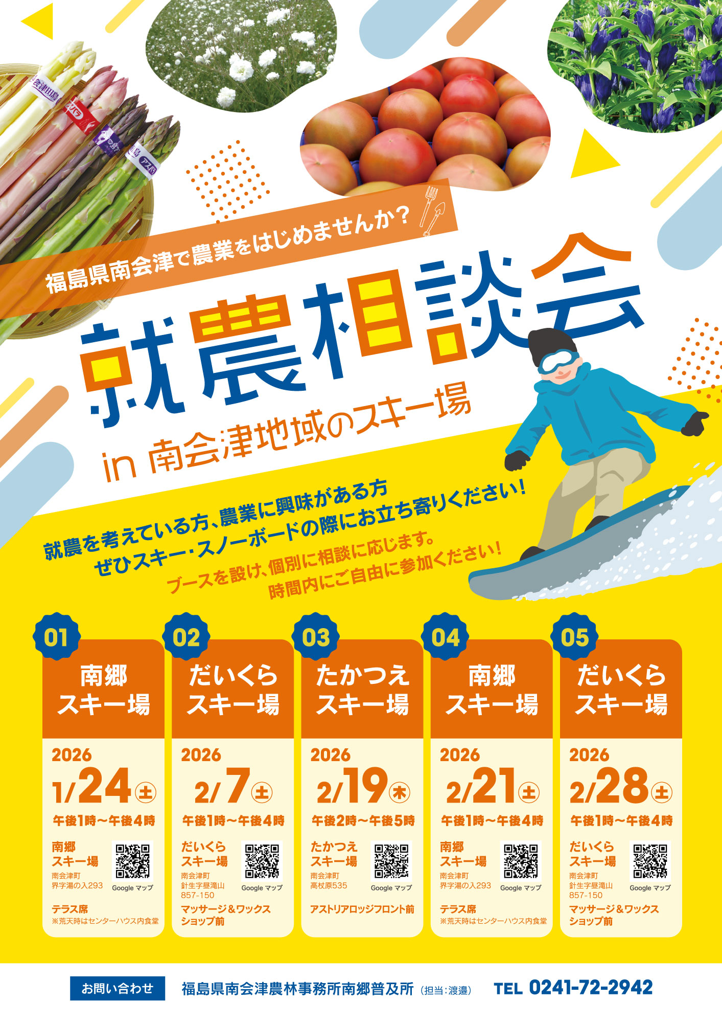 今年も南会津地域の各スキー場で就農相談会を開催します!