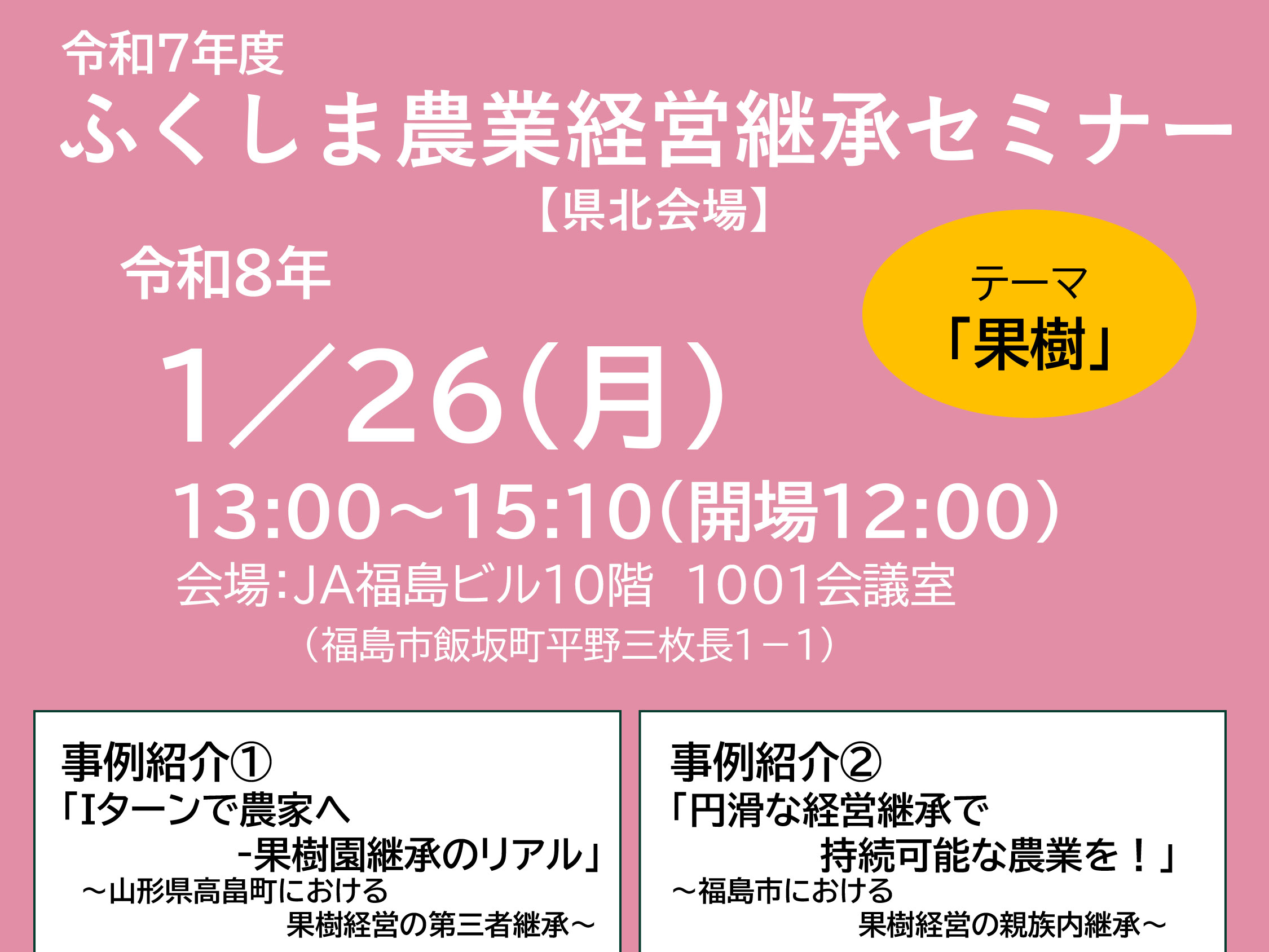 【農業者向け・テーマ「果樹」/県北会場】1/26(月) 令和7年度ふくしま農業経営継承セミナーを開催します!