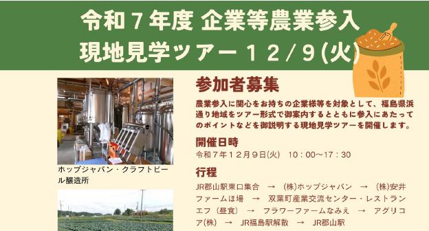 12/9(火)「令和7年度企業等農業参入現地見学ツアー」を開催します!
